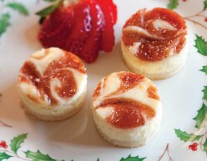 Yield: 16 mini cheesecakes • Preparation: 30 minutes • Bake: 35 minutes • Refrigerate: 4 hours