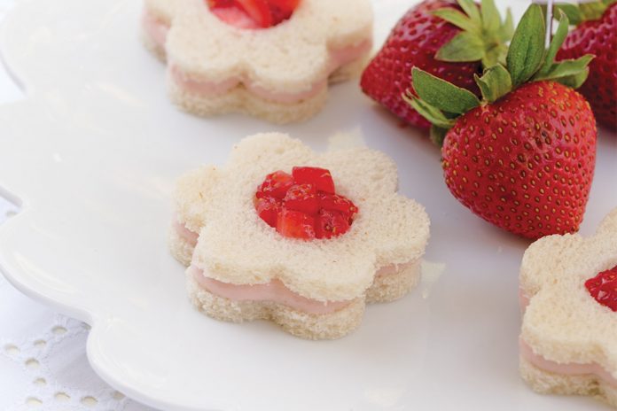 Make-Ahead Tip: Sandwiches can be assembled an hour before serving (minus diced strawberries), covered with damp paper towels, placed in an airtight container, and stored in the refrigerator. Fill centers with diced strawberries just before serving.