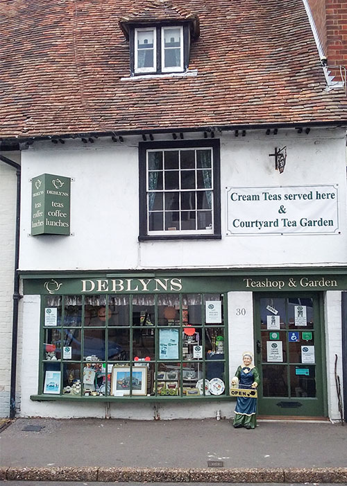 Deblyns Teashop is the sort of traditional tearoom that tourists and foreign visitors absolutely love. The Grade II–listed building has links back to 1287, and the building was once a hall house (a tall, one-roomed dwelling house built of plaster and wood and with a tall sloping roof). Later in its history, it was divided horizontally to create a downstairs and an upstairs, and tea is served on both floors today. The small town of New Romney also has a long history, and the local people are said to have fought off William the Conqueror’s first attempts to take England before his victory at the Battle of Hastings further along the coast in 1066. Sitting in the pretty walled garden or at a table indoors, it’s easy to imagine medieval life in this small historic town. It lies today on the main route that links Dover, where ferries from Europe dock, to the small Saxon town of Rye and the popular seaside towns of Eastbourne and Brighton. Tearoom owner Lynn Coutts has created a haven of gentility and old-fashioned calm for locals and travelers alike. The tearoom serves comforting pots of tea, wonderful scones, “Vintage” Afternoon Teas on tiered cake stands, High Teas with toasted buttered crumpets, and Savoury Teas with scrumptious cheese scones and caramelized onion chutney. The cakes and scones are all baked in the tearoom kitchen, and the menu of sandwiches, panini, salads, and ploughman’s lunches offers something delicious for everyone.