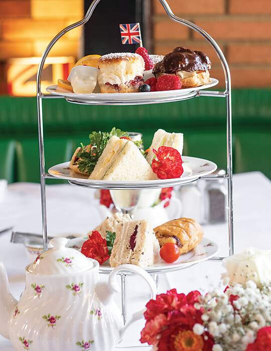 “The King’s Head,” as locals lovingly refer to it, began as a bar, and then a restaurant came along, and eventually, the tearoom was opened a decade ago by Scottish native, Christine Mcintosh. The pub’s classically British hearty fare of bangers and mash, fish and chips, and a traditional Sunday roast had to make room for dainty, tea-size bites to coexist in the same space. Christine was the right person for the job, as she had just completed 20 years of dedicated work at a nearby tea venue and was asked to join the staff at Ye Olde King’s Head specifically to create a tearoom. “Before I came to America, I didn’t do afternoon tea,” Christine proclaims. “There was a Scottish lady that I would do tea with here. We would go to the fancy hotels that were lovely and expensive, and we would have tea. The tearoom I have here, I want it to be affordable for people, cozy, and friendly—a bit more of a warm feeling.” After one short conversation with Christine, it is evident that the “warm feeling” she desired has been effortlessly achieved. Customers rave about the palpable hospitality and friendliness radiating from the tearoom manager with every kind word and “thank you, lovey” that is mustered.