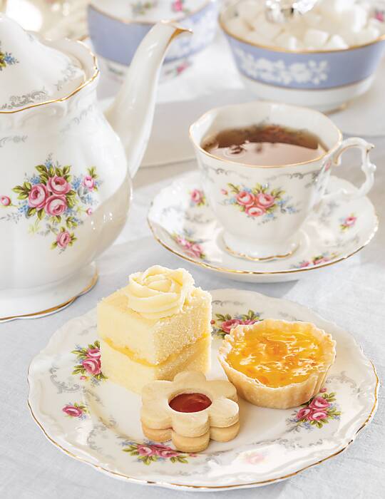 End your teatime on a sweet note with a delightful pot of True Leaf Tea’s Organic Black Rose Tea and our Elderflower, Lemon & White Chocolate Cakes, Strawberry Jammy Flowers, and Orange & Honey Custard Tartlets.