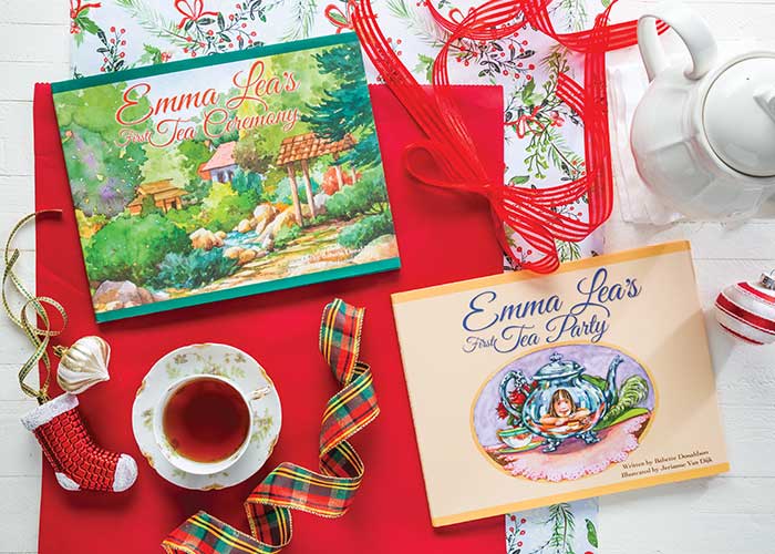 Her third book, Emma Lea’s First Tea Ceremony, reflects that. Emma Lea’s friend Sam, who is Japanese-American, invites her to a Japanese tea ceremony in his family’s teahouse in their patio, lending her a kimono to wear. Her inspiration for her series is “the basic belief that tea offers something meaningful for families— so they start to see tea as a major part of life, not just a beverage.” Fittingly, she launched a project, Sip for Peace, where a group ponders famous people’s quotes about peace, from John Lennon and Eleanor Roosevelt to Martin Luther King, Jr., as they sip tea, visualize a world without war or violence, and share their personal peace with others. (It won a World Tea Expo award for best consumer marketing campaign in 2019.) Signup for Sunday Sip-Ins for peace on Zoom is on her tea education website, tching.com, which also offers 3,500 articles about tea, events listings, a newsletter, and monthly raffle prizes.