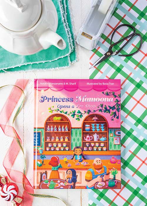 Following your passion to start a business is the theme of Princess Mamoona Opens a Tea Shop, by Natalie Manzanares and her best friend, Mamoona Sharif, for whom the book is named. “We both love tea and tea snacks. When we travel, we send photos of tea shops to each other,” says Natalie, who lives in Leesburg, Virginia, and has a daughter, age four. The book’s Mamoona finds an empty space in a blue house with a pink door in her town, just perfect for the tea shop she yearns to open. She succeeds with help from the mayor, grouchy due to insomnia, which is cured after she persuades the non-tea- drinker to sip her chamomile tea with lemon juice.