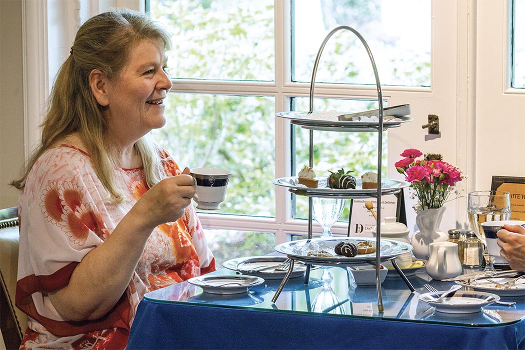 Taking tea at the Arboretum feels special, magical, and historical—an enjoyable divergence from the quick pace of normal life. “Afternoon tea here has been around for a long time,” states Angela Rollins, Director of Special Events. “It started off very small and has become a huge source of revenue for us.” For $62 to $65 per person, depending on the time of year, guests can expect to savor a scrumptious, three-course meal per tradition, available seven days a week by reservation. The fare includes a seasonal soup, assorted tea sandwiches, and an impressive selection of eight to ten miniature desserts and scones. The tender scones are served warm and come plated with the tempting sweets course. The menu changes seasonally so that patrons who frequent the teatime establishment are continually presented with a new and pleasant experience; however, customer favorites, like chicken salad and cucumber sandwiches, tend to be staples, as they are just too divine to part with for a season.
