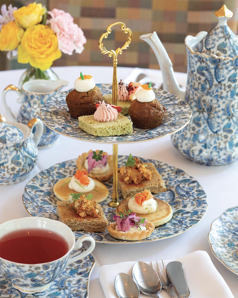 After word had gotten out that Potpourri was selling teas, people began asking if the business served afternoon tea. “We did research overnight to figure out what afternoon teas are,” Andrés chuckles. “We started doing tea as a side gig for seven years, and it continued to become more and more popular. We were getting creative with it, and when COVID-19 hit, we closed the shop for a full year and redesigned. Due to the demand, the Barreiros decided to commit to being strictly a teahouse. “All we do now is afternoon tea and counter service for croissants, sourdoughs, and to-go cups of tea and coffee,” Andrés says. “We took a typical afternoon-tea menu, broke it down into a hybrid multicourse menu, and got creative with it.”