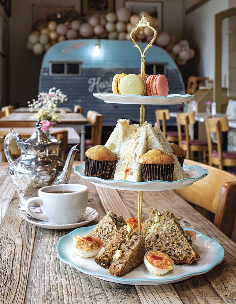 “Our afternoon-tea service is classic with a casual Southern twist,” Brittany explains. “We are not a fancy tearoom; the purpose is to be a place to have delicious small bites with loved ones or colleagues in a pretty setting that is far from stuffy.” Whether you choose to select the aforementioned service or would rather enjoy a simple salad or soup for lunch, it is extremely difficult to go wrong with anything on the menu. The traditional afternoon tea, available for $35 per adult and $20 for children, affords a sampling of tasty tea sandwiches (best-selling chicken salad with a hint of tarragon, egg salad, pimiento cheese, and a cucumber-dill cream cheese), two scratch-made deviled eggs with a touch of hot sauce, and delicious mini muffins and homemade macarons from a local bakery.
