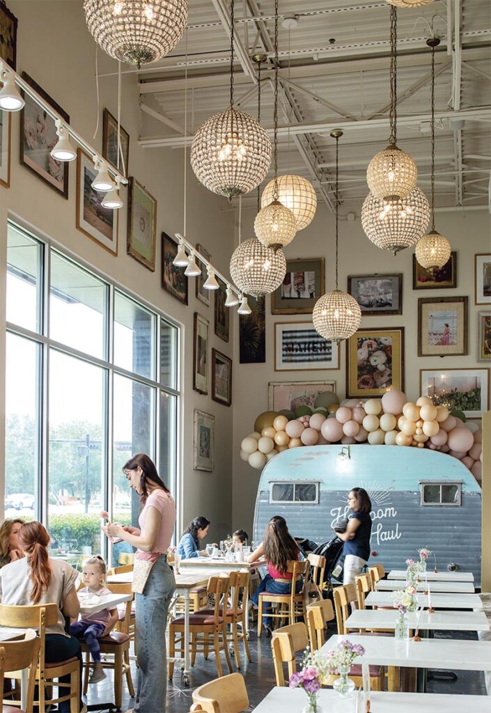 Flea Style is a 6,100-square-foot retail emporium for handmade, vintage goods, such as attractive hats, stylish clothing, and eye-catching brooches. It’s a one-of-a-kind concept where an afternoon of shopping culminates in a memorable teatime to perfectly cap off the fun-filled day. Heirloom Haul, the casual ideation for “ladies who lunch,” is laden with unmatched finds to adorn the walls and the tables. Appealing art and hand-picked china, all carefully collected and chosen by Brittany, provide a homey and warm feeling that adds immense character to the dining. The focal point is a vintage trailer displaying the business’s name, evoking a sense of nostalgia of hauling heirlooms in days gone by. The space is thoughtfully designed to be a continuation of everything a customer might witness during a shopping journey. The ambiance is a wonderful mix of fun, relaxing, and noteworthy.