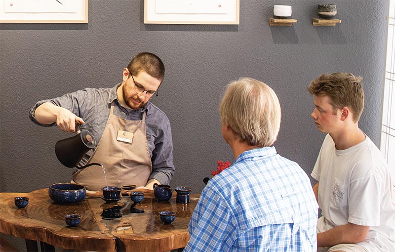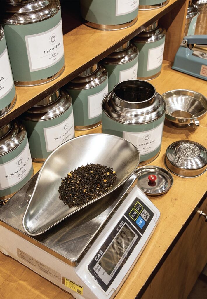 A visit to the warm, inviting, and modern space is perfect for both the tea beginner and the connoisseur. “Our weekly Saturday open tastings and online and in-house classes continually attract demographically and ethnically diverse customers to our store to learn through guided tasting experiences,” Kyle notes. “Several customers call us the United Nations of Tea!” Their inventory on the tea side includes blacks, darks, greens, oolongs, whites, and tisanes. Tea wares for preparing, serving, and storing are also available for purchase. The favorites among both the customers and the staff include, but are not limited to, Marco Polo by Mariage Frères, Cream Oolong from Nantou Taiwan, Kukicha from Shizuoka, Japan, and Ancient Tree Tea from China. The Artisan Tea Collection embodies the brand’s most interesting and exotic offerings picked by the owners and team members. Making the cut for this exclusive assemblage are Masala chais, Dragonwell greens of various grades, Darjeelings, senchas, and jasmine teas, just to name a few.