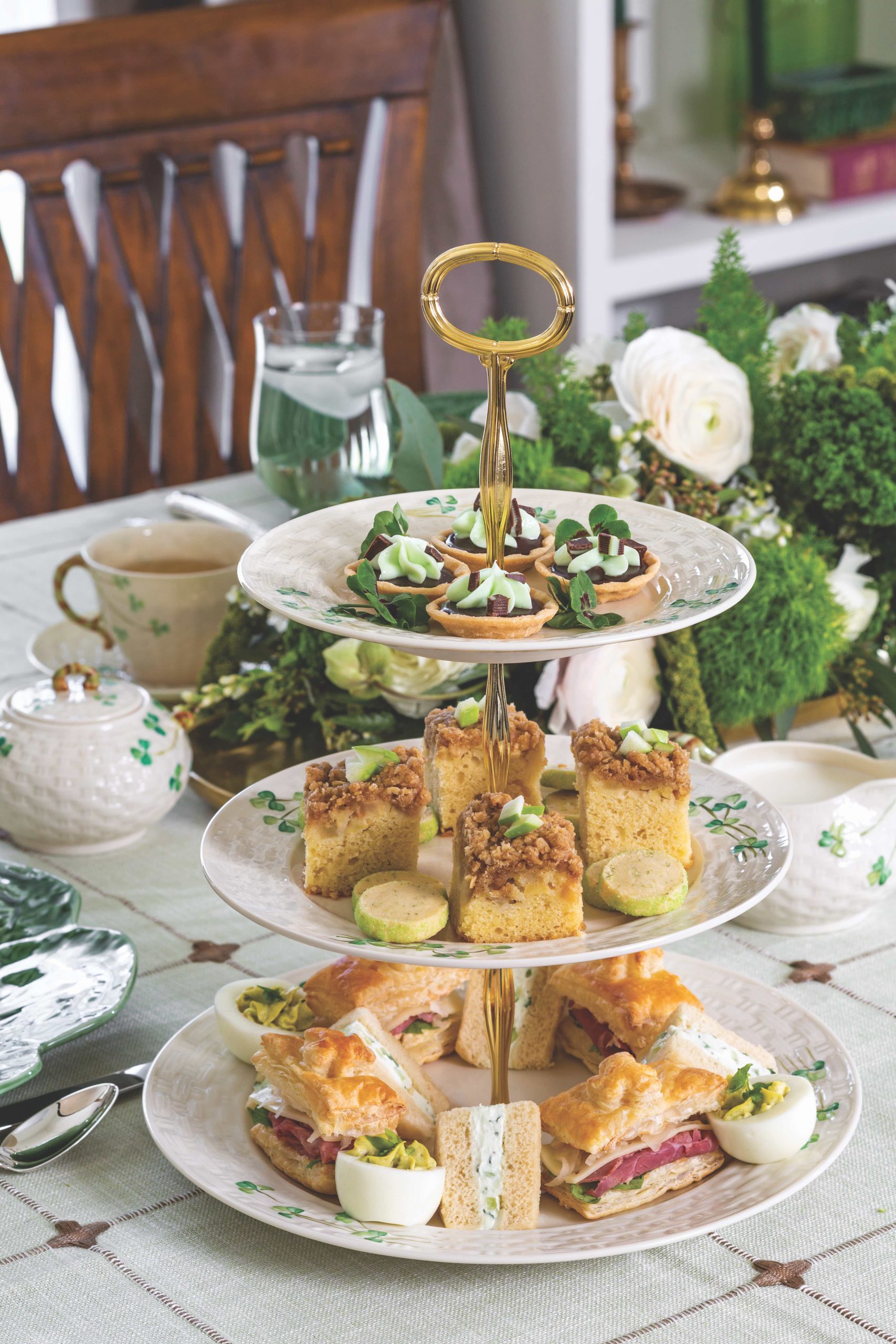 TeaTime March/April 2023 Issue Preview February 17, 2023 FacebookTwitterPinterestWhatsApp Ode to the Irish A lovely table adorned in green and white sets a picture-perfect scene to celebrate St. Patrick’s Day on March 17 amongst shamrocks and inspired cuisine, like Grasshopper Mini Tartlets and Irish Apple Cakes.