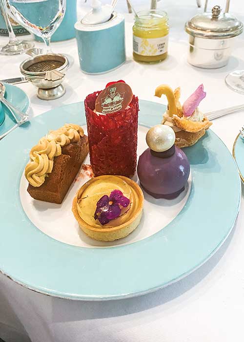 While in England, our group was never deprived of the three courses that we know so well: savories, scones, and sweets. Our itinerary of afternoon teas for the retreat was diverse and included elegant and well-known venues, like Claridge’s and Fortnum and Mason, as well as the wonderfully delectable offerings of Wedgwood Tea Room and Ting’s at The Shard, a stylish and modern eatery with an Asian-inspired menu and panoramic views of London’s cityscape. Each individual tea afforded a deliciously different experience in style and taste. Whether you were searching for a seemingly endless list of bespoke tea blends from which to choose, artful confections that truly took your breath away, a unique take on the beloved ritual that you have yet to see, or simply a delightful respite in a pretty atmosphere, having the chance to experience teatime in several spaces and capacities was quite marvelous. While each person could most likely recall their favorite afternoon tea of the trip, every tea we attended was remarkable in its own way.