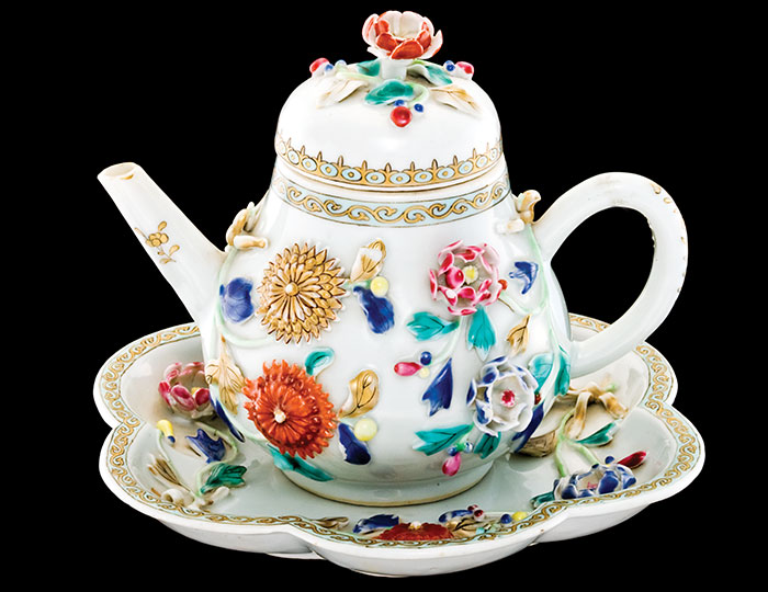 The Directors of the East India Company in London, who by the second half of the 17th century were buying tea as well as teapots and bowls, were not always satisfied with the goods that arrived. In March 1685, they wrote to their president in the East who was in charge of the various trading posts: “We can now but briefly tell you that we are amazed at the prices you have invoiced to us, your own goods from Chyna, being 50 per cent as near as we can guess more than they will bring here . . . the thea is generally trash . . . the thea cups dear at 1d apiece at the Fort—breakage considered.” However, the Company cannot have been too disappointed for between 1720 and 1770, the British East India Company imported between 30 and 35 million pieces of Chinese porcelain.