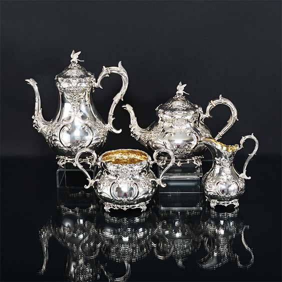 The way into The Chancery Lane Safe Deposit Company in Victorian times was through an elaborate archway at 61 and 62 Chancery Lane. In contrast to that impressive entrance, the very modest front door today is just around the corner on a quiet street called Southampton Buildings, although the official address is 53 to 64 Chancery Lane. The modern front door gives no hint of the valuable stash of wonderful gleaming silver teawares on show in the shops 40 feet below your feet. The Vaults are open to everyone, and the only requirement is that, before heading downstairs, all visitors must sign in at the front desk. Once you reach the bottom of the staircase, follow the finger pointers until you find yourself in the first corridor of shops. Each unit has steel-lined walls that are 3.9-feet thick and, when the shop is closed for business, all the valuable items are secured behind a heavy, solid, black iron door. Not all the vaults are open at all times; some of the traders may be away on a buying trip or taking part in an antiques fair out of London or abroad. And not all traders restrict themselves to silver; some sell jewellery, antique watches, items made of crystal, valuable stamps, antique costumes, or cutlery. The Silver Vaults’ website includes phone numbers and web addresses of the individual retailers, so it’s possible to check ahead to find out which traders will be there on a particular day. It’s important to allow plenty of time for a visit because there is just so much to see, and the individual silver specialists who ply their trade here are extremely knowledgeable about the items they stock and are very happy to talk about them. So, seize the opportunity to ask questions, seek guidance, and discuss the age and purpose of pieces that may be of interest. Some of the traders are absolutely passionate about tea and specialise in silver tea equipage from different periods, in different styles, and perhaps made by particularly important and famous silversmiths. And in other vaults, there are usually a few teawares on display, even if tea is not that company’s main interest, so if you have time to browse, it is well worth going into all the different vaults because you never know what you will find.