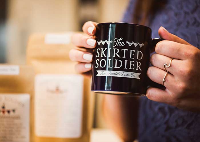What began as a small company that only sold six of the most common teas, including a breakfast tea and Earl Grey, now produces many blends, ranging from her most popular classics like Green Beret–Moroccan Mint to exclusive flavored blends like Chow Hall–Apple Cinnamon French Toast. Along with single blends, The Skirted Soldier sells sampler packs, which are a wonderful way for customers to taste an array of new, seasonally flavored blends. Members of the Tea Tasters Task Force can get exclusive sneak peeks at upcoming new releases and receive monthly newsletters.