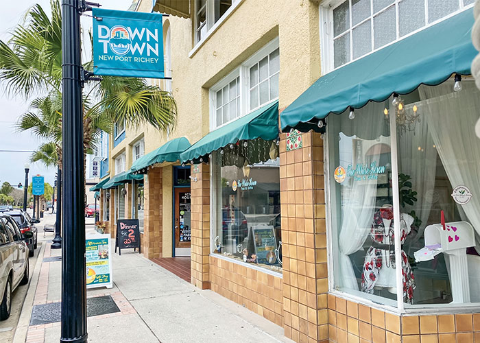 Born and raised just north of Tampa in New Port Richey, Florida, a town of approximately 16,000, Kelly worked for several years for an agency that raised money for non-profit organizations. She loved the impact she was making, but she found the work exhausting and stressful. She decided that if she was going to work that hard, she wanted to do it for herself and to help her town. “I said to my husband, ‘I think our town has potential, and I want people to love it like I love it,’ ” Kelly recalls. “New Port Richey is so picturesque. The buildings are beautiful. I just see it like that town you would see in a Hallmark movie.” And because the towns featured in those movies all seemed to have a gift shop, Kelly decided that she would like to open one. Her CPA and her attorney, concerned about the long-term viability of such a retail venture, advised her to put something else with the gift shop—perhaps a bakery or a coffee shop, they suggested. But none of those options resonated with Kelly, so she put the entire idea on the shelf until one fateful day in 2015.