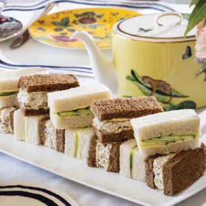 Dried sage and fresh lemon zest are the secret ingredients in the Wedgwood Tea Room’s version of these traditional sandwiches. Pictured with Classic Cucumber Sandwiches.
