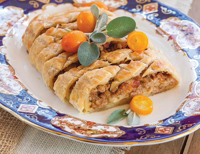 Next, enjoy Simpson & Vail’s Tippy Yunnan China Black Tea with our trio of delicious savories. Succotash-Stuffed Mushrooms, Smoked Gouda Cups with Brussels Sprouts Slaw, and Fontina & Pork Puff Pastry make an impressive grouping.