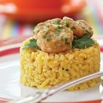 Yellow Rice Timbales with Smoked Paprika Shrimp